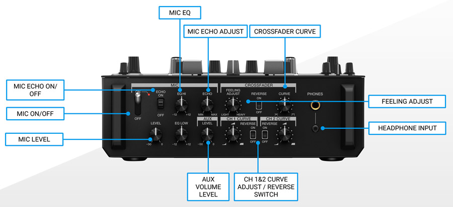 Under the hood of the DJMS11 mixer is superior audio technology that allows for greater sound clarity and power, similar to that of the industry-standard DJM-900NXS2. The DSP contains a 64-bit studio-quality mixing and dithering process, the master output features a 32-bit quality D/A converter, and there is a low-jitter clock circuit present.